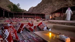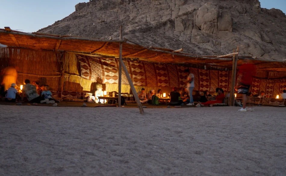 Ваше приключение начнется с комфортного трансфера из отеля в Хургаде. Всего примерно через 60 минут, в зависимости от вашего местоположения, вы окажетесь в сердце пустыни. Первая остановка — настоящий дом шейха бедуинской семьи. Здесь вы познакомитесь с традициями и бытом бедуинов, попробуете ароматный бедуинский чай и даже сможете прокатиться на верблюдах.